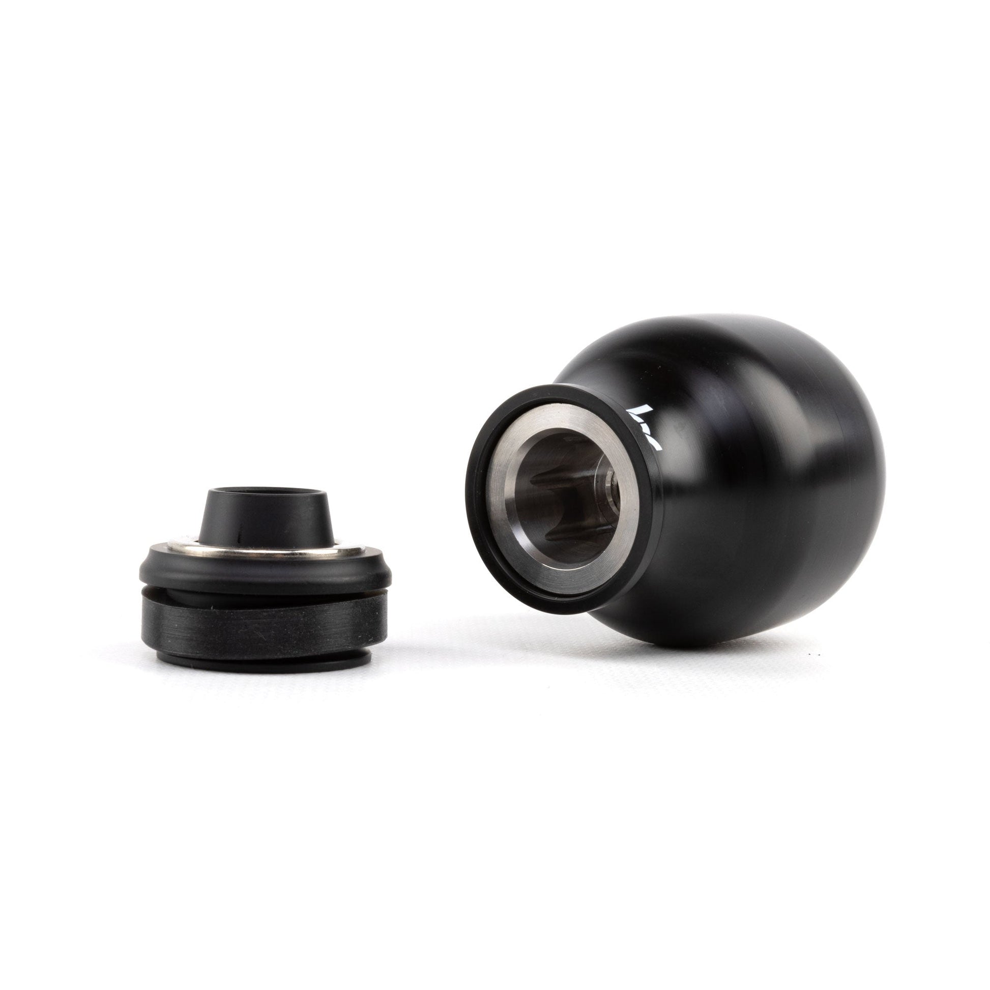 This knob is threaded deep and sits as low as possible on the new generation shifters. Its round shape fits in the palm of your hand precisely and comfortably.