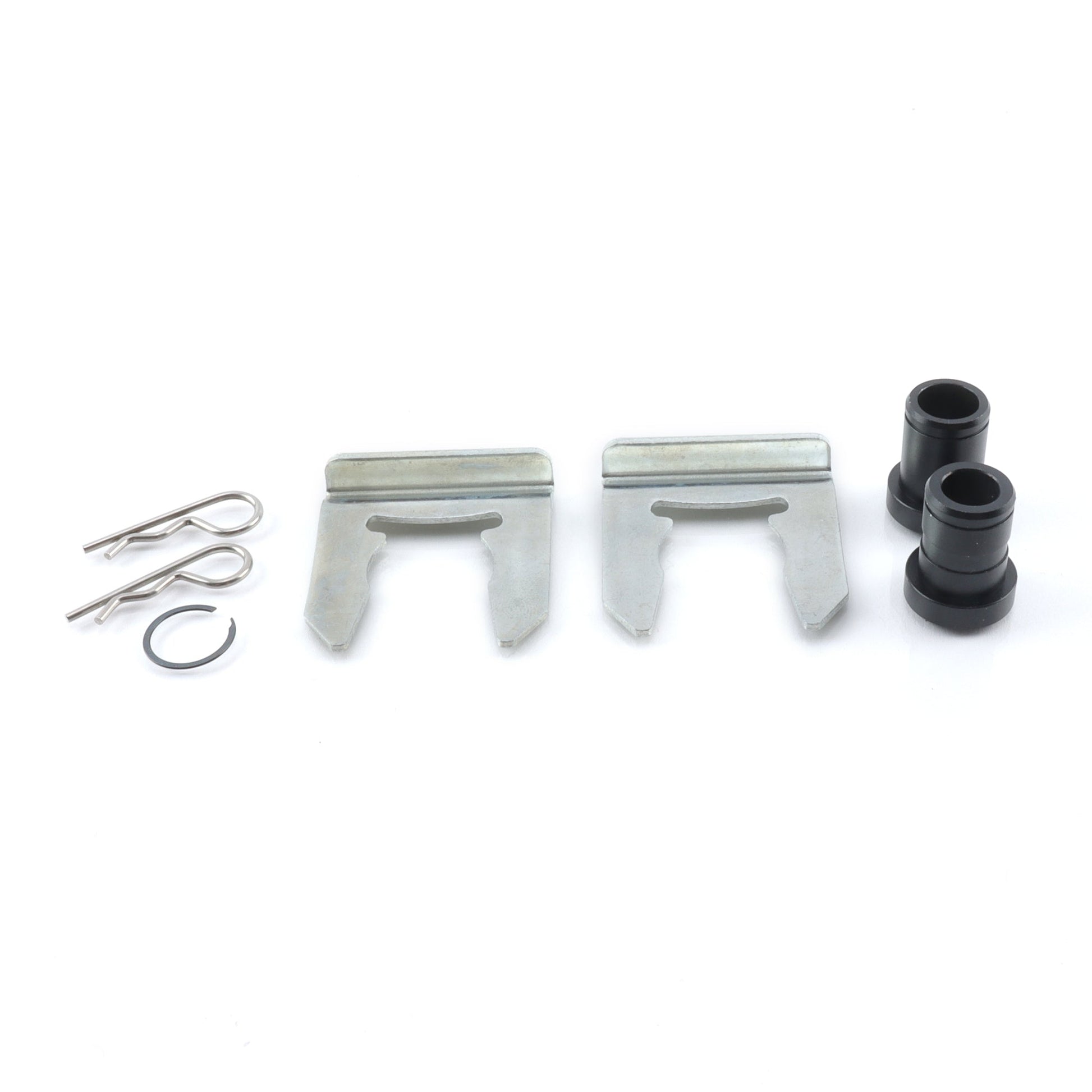 The kit comes with two shifter cables; each set includes two cotter pins, and clips for the shifter end. We also include new hardware for the shifter cable mounting plates that attach to the transmission bracket.