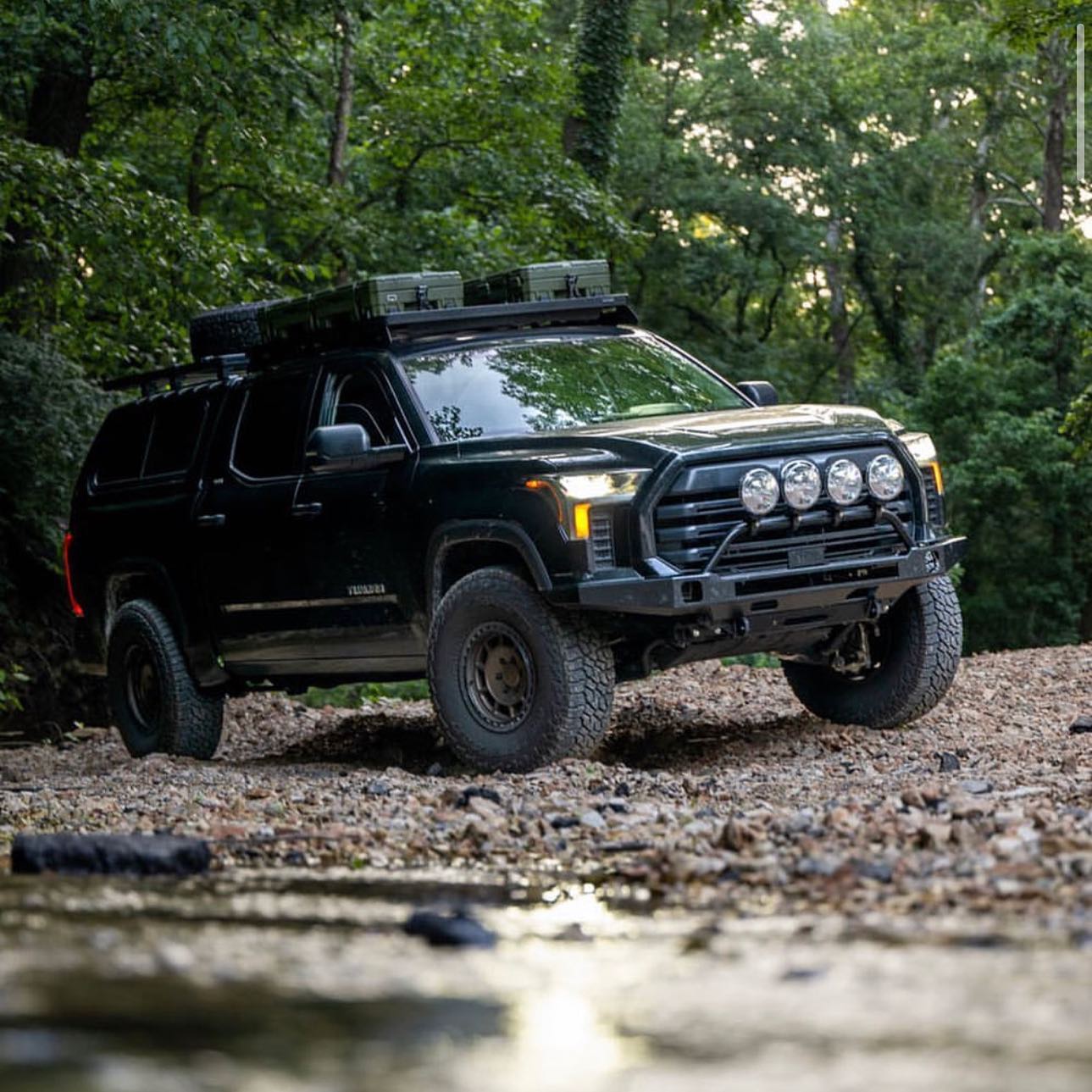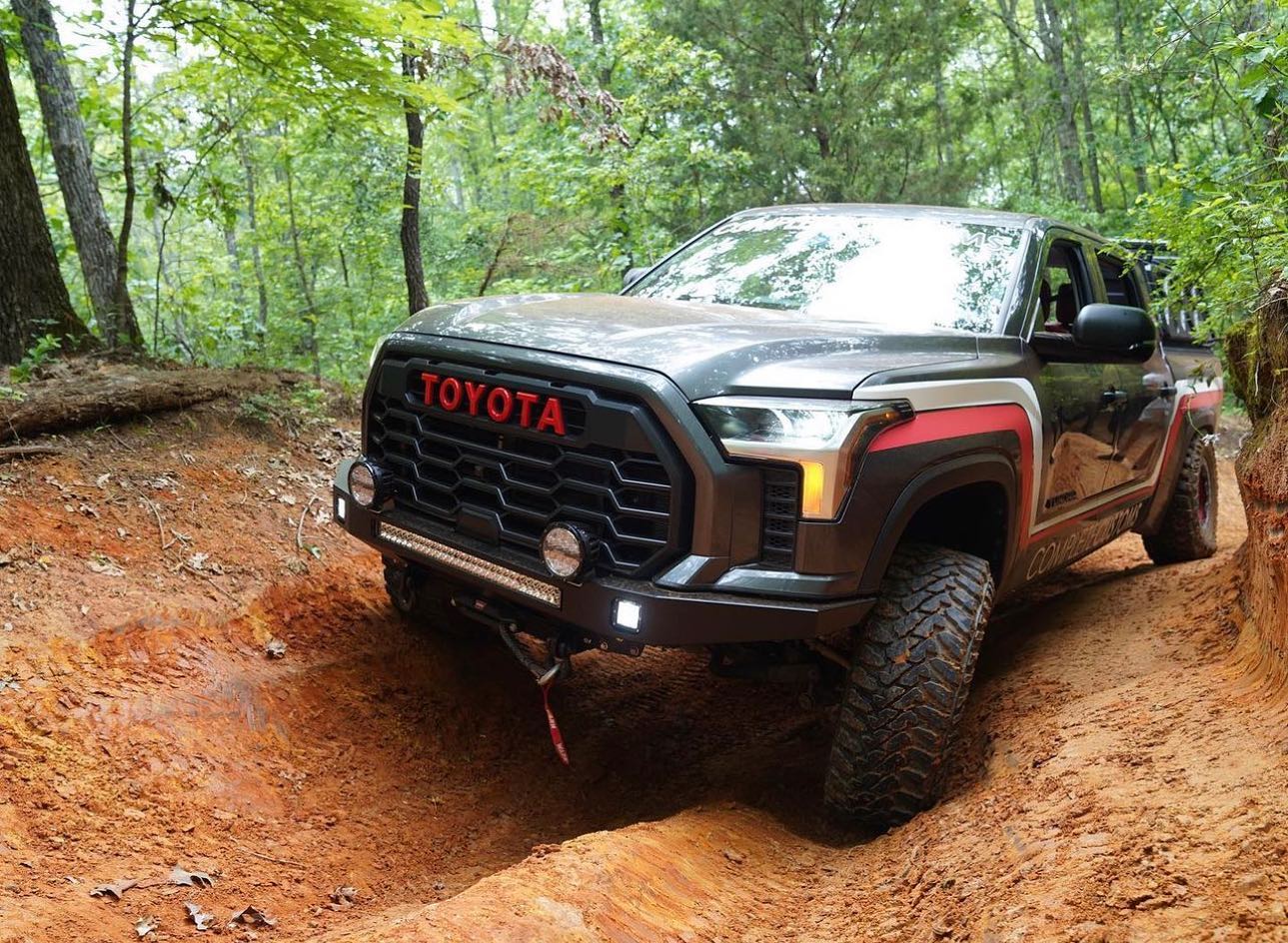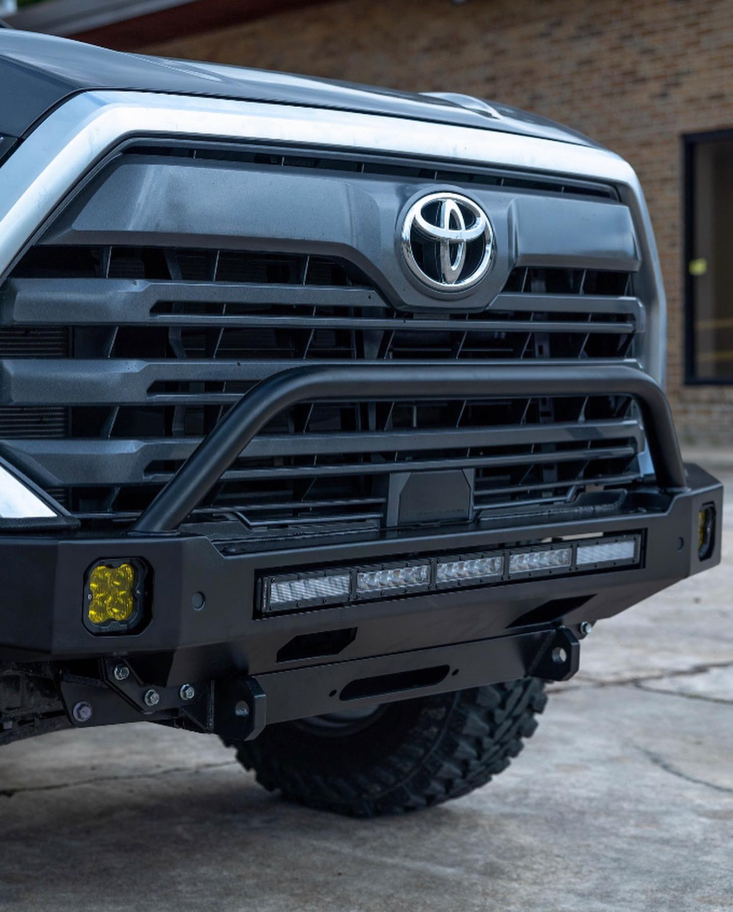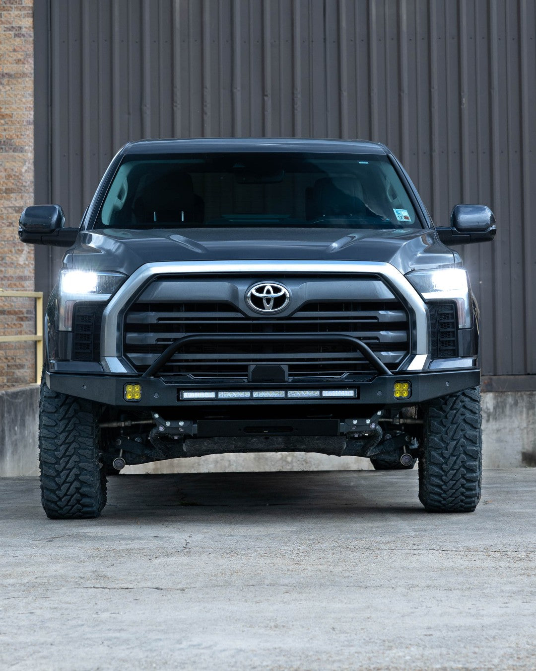Please note: This preconfigured bumper does not include a light bar. Upgrade your offroad experience with the 2022+ Toyota Tundra Slimline Hybrid Full Plate Front Bumper – where strength, functionality, and American craftsmanship converge.