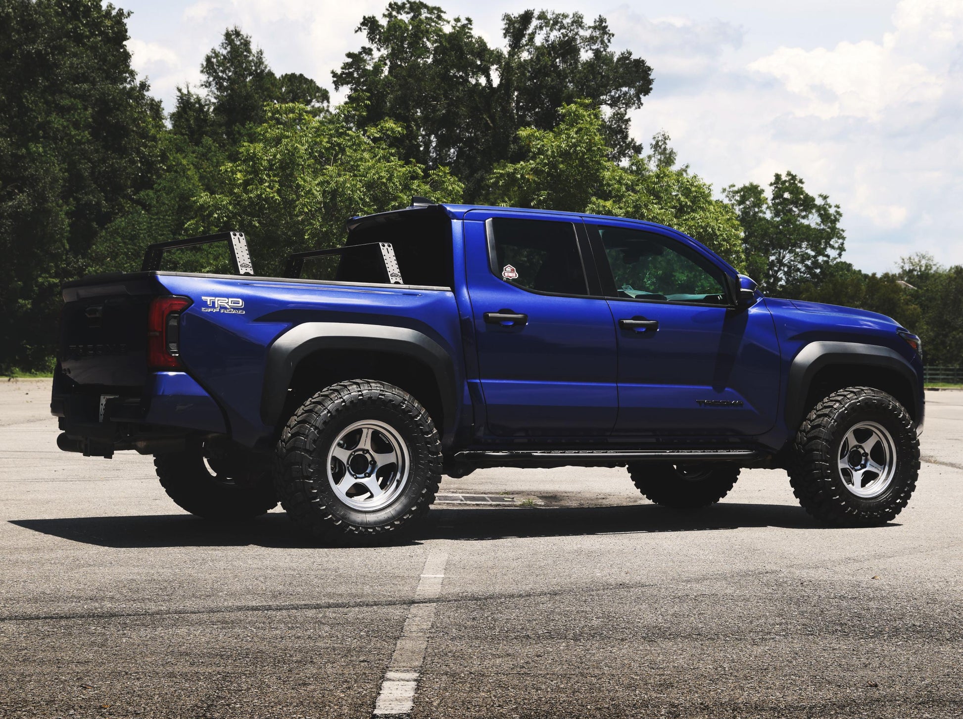 Protect your new 2024+ Toyota Tacoma with the trail-tested Southern Style Rock Sliders. These sliders are designed to fit the 24+ Tacoma Double Cab Short Bed truck configuration only. Designed specifically for the demands of the 4th Gen Tacoma with 1/4" thick mounting plates and 3/16" square tubing, these rock sliders offer exceptional protection against natural obstacles such as trees and boulders, as well as shielding your vehicle from incidental scrapes and bumps from other obstacles with the 0-degree kick out. The sliders come powder coated in a durable matte black finish with dimple die top plates to make ingress and egress easier.